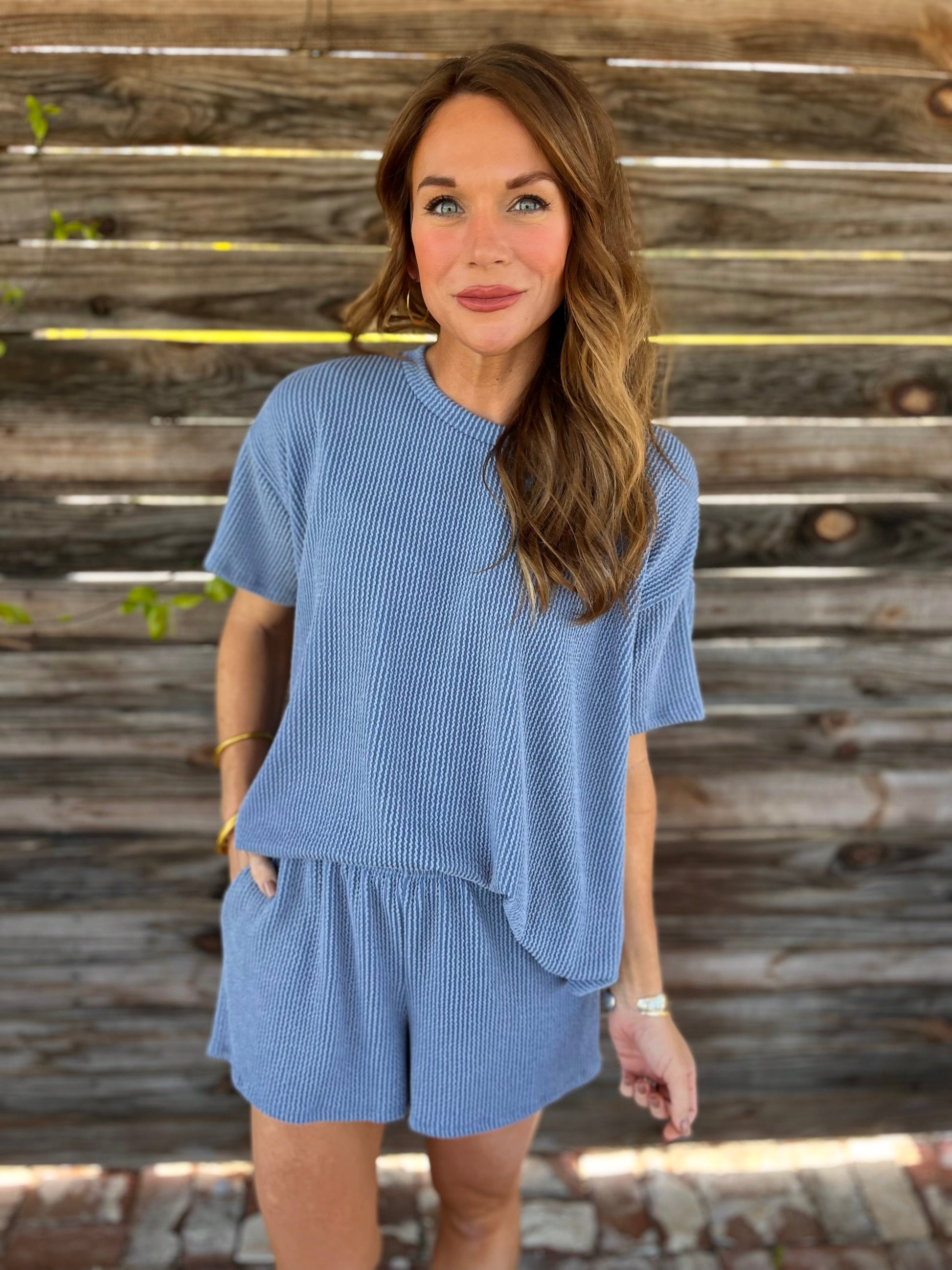 Ribbed short and shirt set
